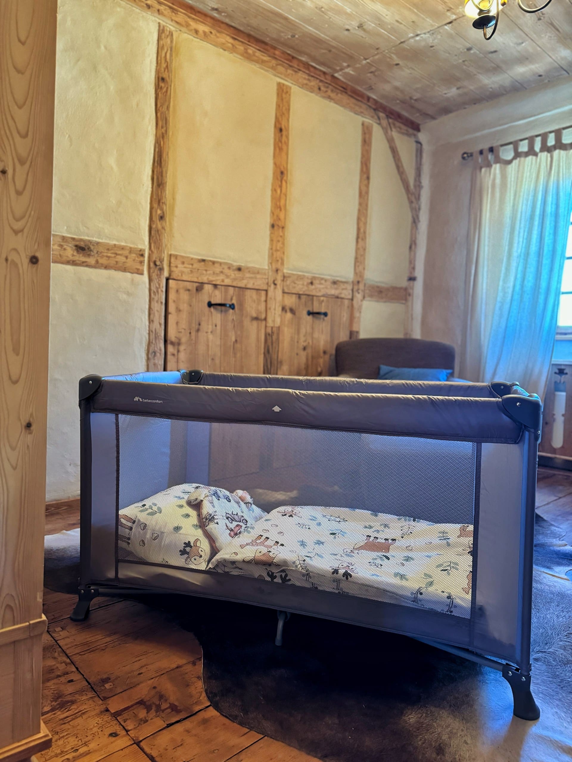 Roubenka je plně přizpůsobená i pro nejmenší hosty. Chceme, aby si pobyt užila celá rodina a děti měly vše potřebné. Mysleli jsme jak na každodenní praktické drobnosti, tak i na zábavu, která dětem pobyt zpříjemní.
